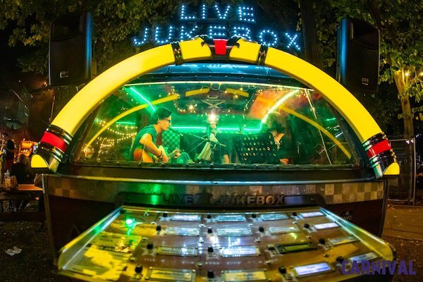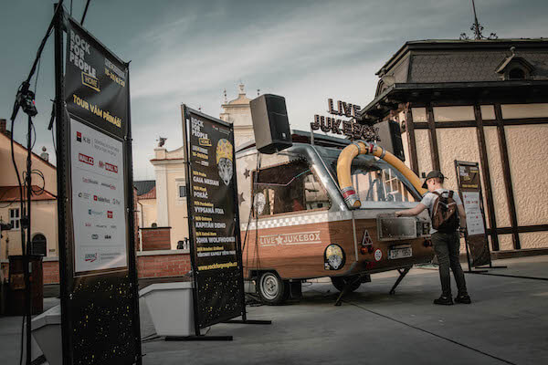 Vezmete karavan, dáte mu design jukeboxu z 50. let, opatříte zvukovým aparátem a světly a posadíte do něj kapelu. A máte originální Live Jukebox.