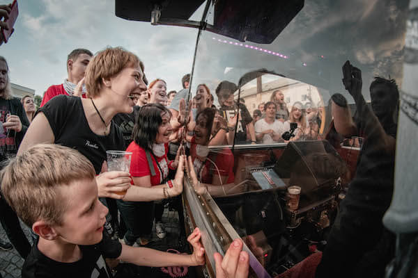 Live jukebox je produkčně nenáročný, stačí jen přípojka na 230V. Pódium, střecha, aparát, kapela - vše v jednom na kolečkách.